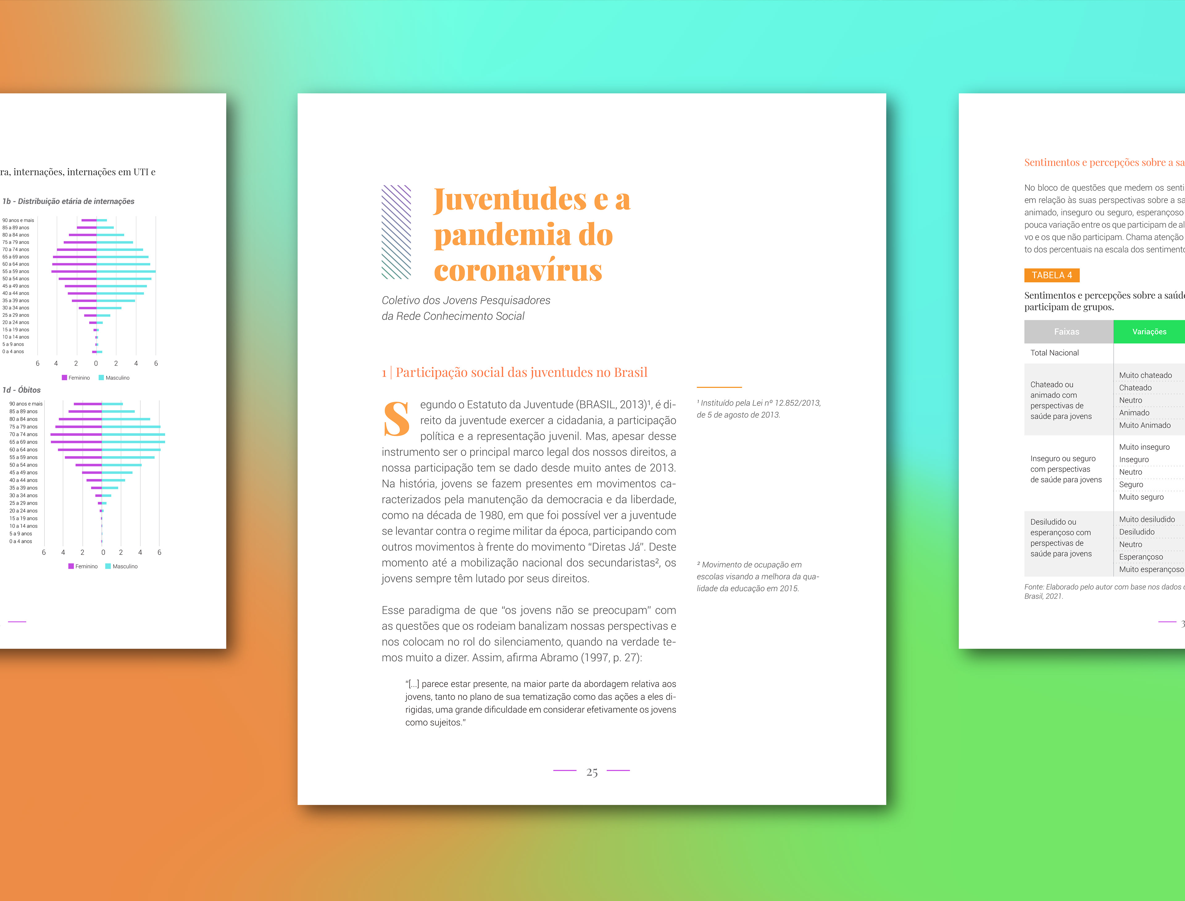 A Fundação Oswaldo Cruz (FIOCRUZ) nos convidou para desenvolver um vasto documento de pesquisa a ser disponibilizado digitalmente. O e-book foi lançado no Portal Fiocruz e aborda o impacto da pandemia nas condições de vida, trabalho, estudo e saúde mental das juventudes a partir do olhar de pesquisadores da área de Brasília, Mato Grosso, Rio de Janeiro, Santa Catarina e São Paulo.